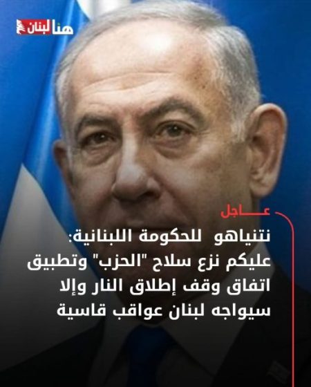 نتنياهو يهدد لبنان: نزع سلاح “حزب الله” أو مواجهة عواقب قاسية