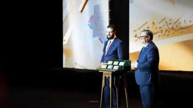 وحضرت عقيلة أحمد الشرع لطيفة الدروبي حفل إطلاق العملة السورية الجديدة في قصر المؤتمرات بدمشق.
