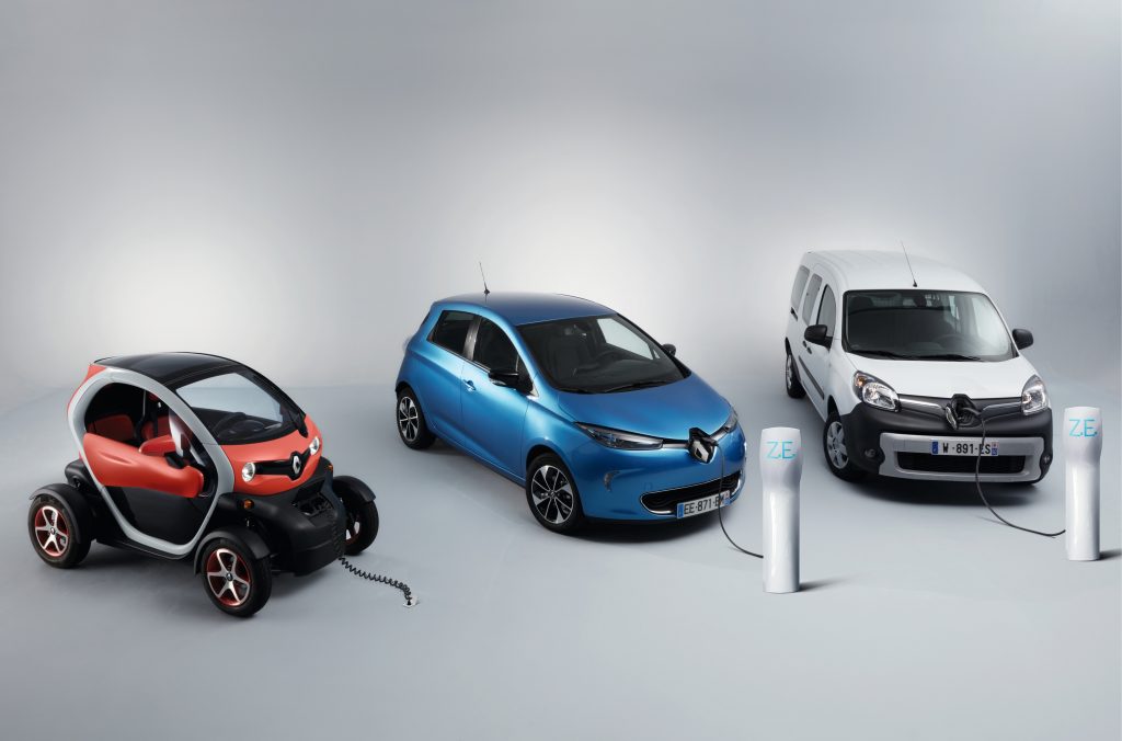 وتُعدّ رينو مصنّع السيارات الوحيد الذي يوفر مجموعة كاملة من المركبات الكهربائية بدءًا مع الدرّاجة الرباعية تويزي، مروراً بسيارة الهاتشباك زو وصولاً إلى فان الاستخدامات المتعدّدة كانغو.