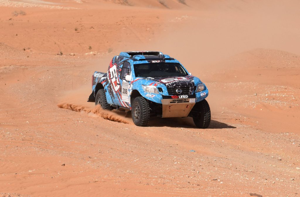 واضطر بطل العالم للراليات الصحراوية لفئة “تي2” ياسر بن سعيدان وملاحه الاماراتي عارف يوسف إلى الانسحاب قبل مرور النصف الأول من المرحلة، حيث عصفت الأعطال الفنية بسيارته.