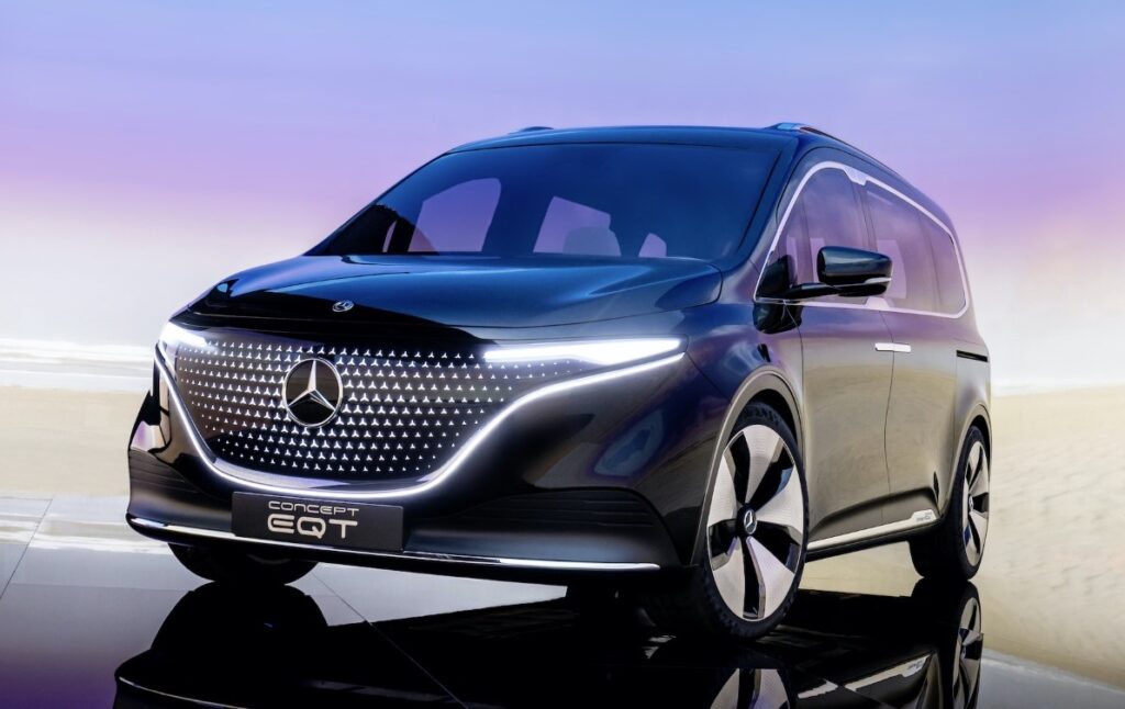 مرسيدس- بنز العلامة الألمانية الفخمة تطلق فئة جديدة من العربات الخدماتية الكهربائية الصديقة للبيئة لزبائن مميزين يحبون التنقل براحة وسهولة ويمارسون هوايات متعددة تقتضي نقل أدوات رياضية وأمتعة مع عائلاتهم وقضاء عطلات ترفيهية داخل وخارج المدينة ، وتملك مرسيدس أسطولاً متكاملاً من سيارات الفان الكبيرة والفخمة في الفئة V وهي قررت إضافة فرد جديد من هذه العائلة في القطاع الصغيرالمدمج من خلال عربة كونسبتEQT التي تعطي انطباعاً جيداً وواضحاً عن أول عربة فاخرة في فئة مركبات الڤان الصغيرة للعائلات والعملاء المهتمين بالأنشطة الترفيهية ، وهي فئة T-Class ونسختها الكهربائية بالكامل.