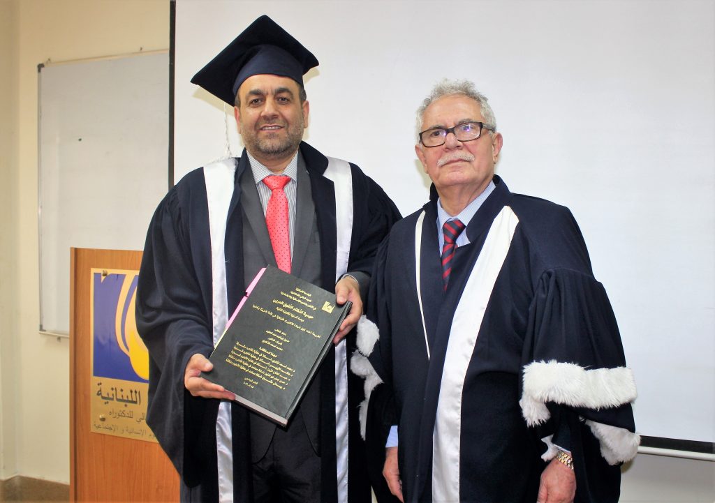 وتشكلت لجنة المناقشة من الأستاذ الدكتور محمد أسعد النادري مشرفا ورئيسا ، وكل من الأساتذة ، د.هاشم الأيوبي ، د.عبد الفتاح الزين ، د. حسن جعفر نور الدين ود.رياض عثمان ، أعضاء .