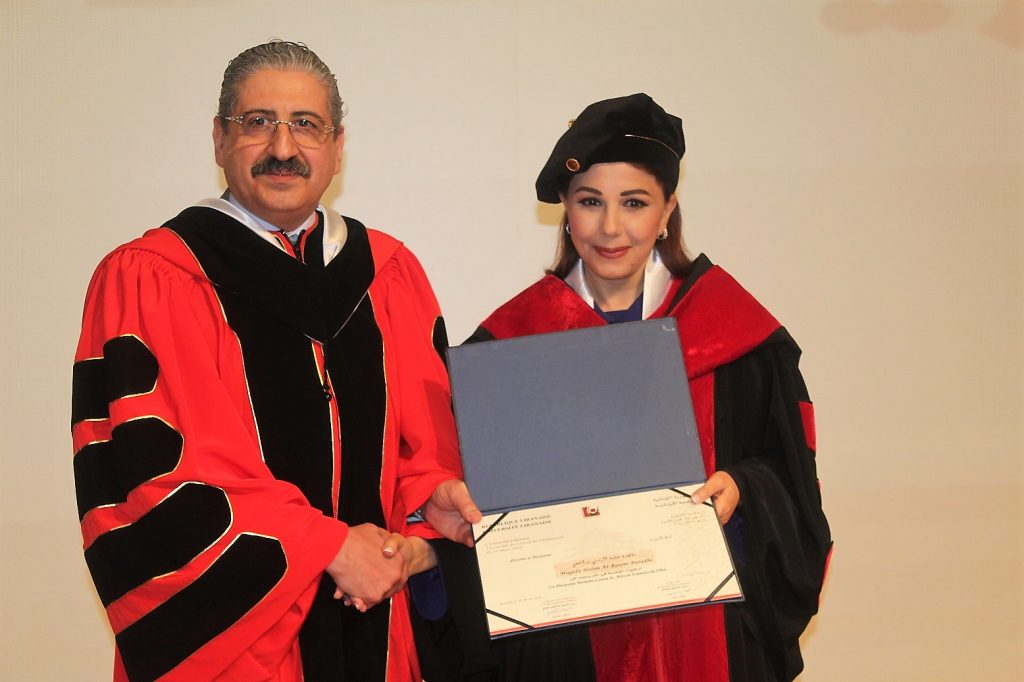 كما كرمت الجامعة الفنانة ماجدة الرومي ومنحتها دكتوراه فخرية، والتي بدورها ألقت كلمة أكدت فيها “أن الجامعة اللبنانية كانت وستبقى الملجأ والملاذ، الحضن والمتكأ والحلم المراد تحقيقه، الأمل والسهر”.
