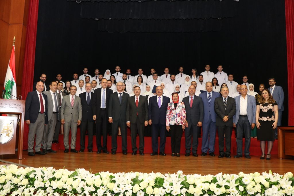 احتفلت كلية الطب في جامعة بيروت العربية بإطلاق الدفعة الرابعة عشرة لأطباء الاختصاص والاختصاص الدقيق الذين أنهوا بنجاح سنوات التدريب الاكلينيكي بمختلف التخصصات الطبية في عدة مستشفيات جامعية وتعليمية وذلك بحضور رئيس مجلس الوزراء سعد الحريري ممثلا بالنائب محمد الحجار والبروفسور ريمون صايغ نقيب أطباء لبنان في بيروت ممثلاً بالبروفسور برنار جرباقة ونقيبة اطباء الاسنان في الشمال الدكتورة رولى ديب خلف و حضر الرائد طارق مهنا ممثلا عن رئيس الطبابة العسطرية العميد جورج يوسف وأسرة الكلية والجامعة ومدراء وممثلي المستشفيات وأهالي الطلاب الخريجين.