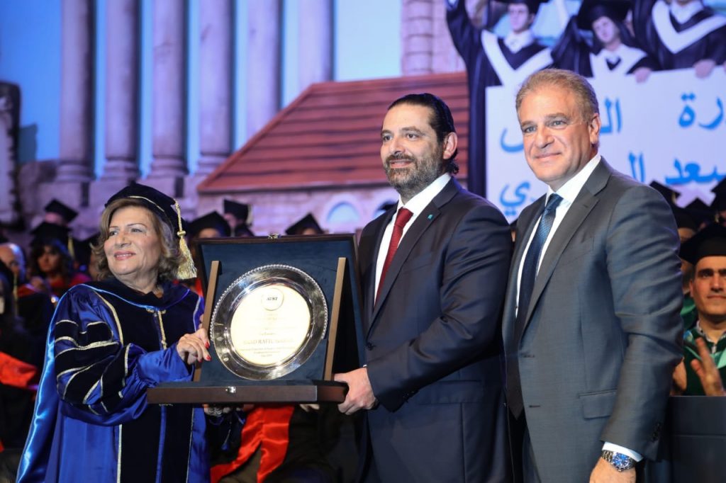 “دولة الرئيس، نفتخر اليوم أن تكون مع عائلة AUST . إن خريجي اليوم هم خريجو دورة سعد الحريري، ولذا فهم أمانة لديك، حتى لا يكون قدرهم قدر الذين سبقوهم وهاجروا البلد الصغير لأن وطن الأرز لم يعد يتسع لأولاده. لهم عليك وعلى الدولة كما للآلاف غيرهم حق العيش في لبنان، فلا تتركهم يا أبا حسام ولولوة وعبد العزيز”.
