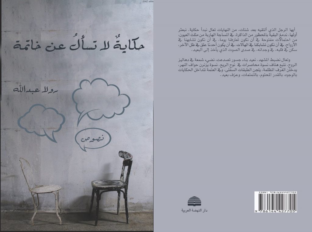 تشد الحكايات الى خواتيمها، إلا أن الزميلة رولا عبدالله في كتابها الصادر حديثا عن دار النهضة العربية بعنوان “حكاية لا تسأل عن خاتمة”، آثرت المضي عكس سير المزاج السائد في القراءة من حيث القفز بين الفقرات بحثا عن الصفحة الاخيرة والجملة التي تحمل آخر الحلول ، كرمى لمتعة القراءة إذ أن النصوص المتعاقبة مرة بصوت الرجل وأخرى بصوت المرأة تحمل فيضا من الحب والاعترافات ، بما لا يسأل القارئ بعدها عن نهاية يمكن أن تكون سعيدة أو حزينة أو “مدبلجة” وفق المزاج الذي يشتهي الغموض بحثا عن طارئ يبدل في الاحداث أو في النهايات أوفي مجريات القصة.