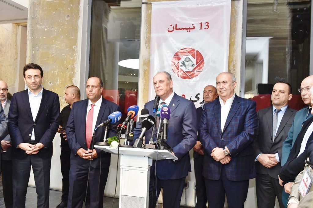 وألقى نقيب المصورين عزيز طاهر كلمة قال فيها : “نلتقي اليوم في بيت بيروت، الذي تحول إلى رمز وشاهد، على تلك الحرب الأليمة، من خلال ثقوب الرصاص وانفجار القذائف التي تذكرنا بالحرب. 44 عاماً مرت على اندلاع الحرب المشؤومة نتذكرها اليوم”.