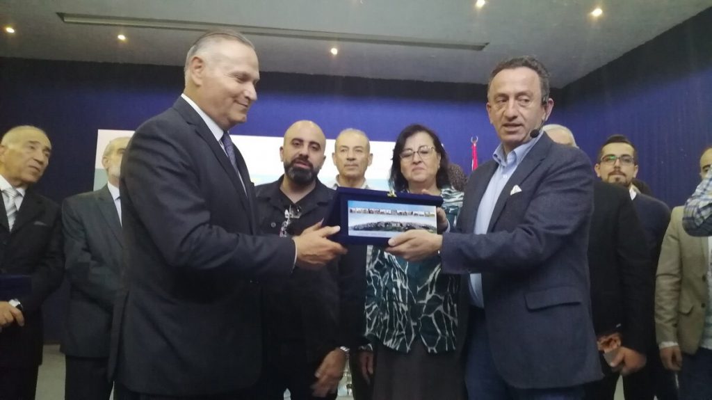 وفي الختام سلم الخطيب درعا تكريمية لكل من حداد وسرور، كما وتسلم الخطيب وحداد دروعا تكريمية من غلمية.