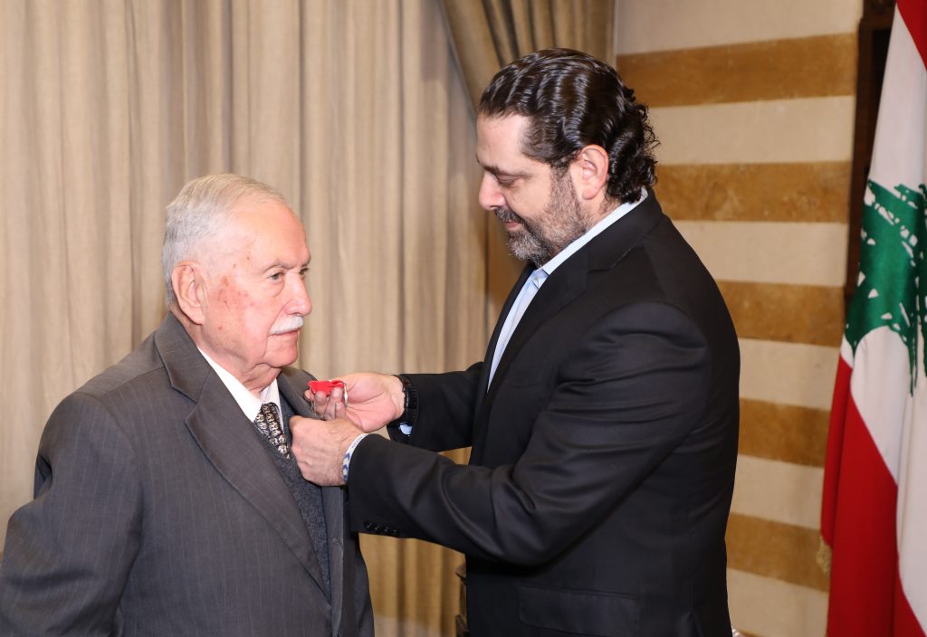 كرم الرئيس سعدالحريري مساء الثلاثاء في 21 / 1 / 2020 في بيت الوسط رئيس النادي الثقافي العربي السابق سميح البابا بمنحه وسام الأرز الوطني لعطاءاته في المجال الثقافي ومثابرته على إقامة معرض بيروت العربي الدولي للكتاب منذ تأسيسه عام 1956 حتى اليوم.