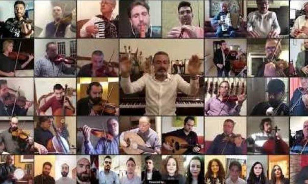 في ظل الحجر المنزلي الذي فرضه فيروس “كورونا” تختلف وجوه الصمود لمكافحة هذا الوباء، إذ أقامت الأوركسترا الوطنية اللبنانية للموسيقى الشرقية العربية مساء أمس، الخميس، عرضًا ”إلكترونيًّا” تحدّت فيه ظروف الحجر الصّحّي الّذي فرضه انتشار الوباء، بثّت فيه عن بُعد وعبر تطبيقات وسائط الهائف الذكي عزفًا وإنشادًا مشتركًا كلُّ من مكان إقامته.
