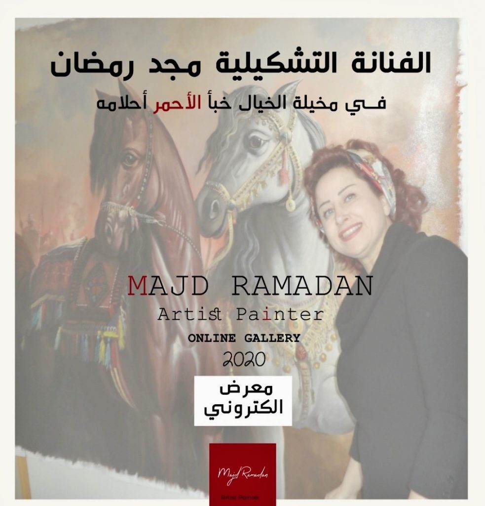 أطلقت الفنانة التشكيلية مجد رمضان معرضها الإلكتروني “في مخيلة الخيال” كتجربة أولى من خلال تقنية ثلاثية الأبعاد تسمح ل”رواد المعرض” ومتذوقي الفن ، بالتجول في أركانه وزواياه والإطلاع على لوحاته وكأنهم يزورونه شخصياً ، بالرغم من العزل المنزلي والتباعد الإجتماعي ، ولأن ديدن الفنان التجدد وتوثيق رسالته من خلال المرحلة التي تعيشها الكرة الأرضية من عزلة، فقد ساهمت الفنانة رمضان بدورها بإدخال ثقافة التأمل والبهجة بالحياة كأنيس للعزلة من خلال لوحاتها الفنية .