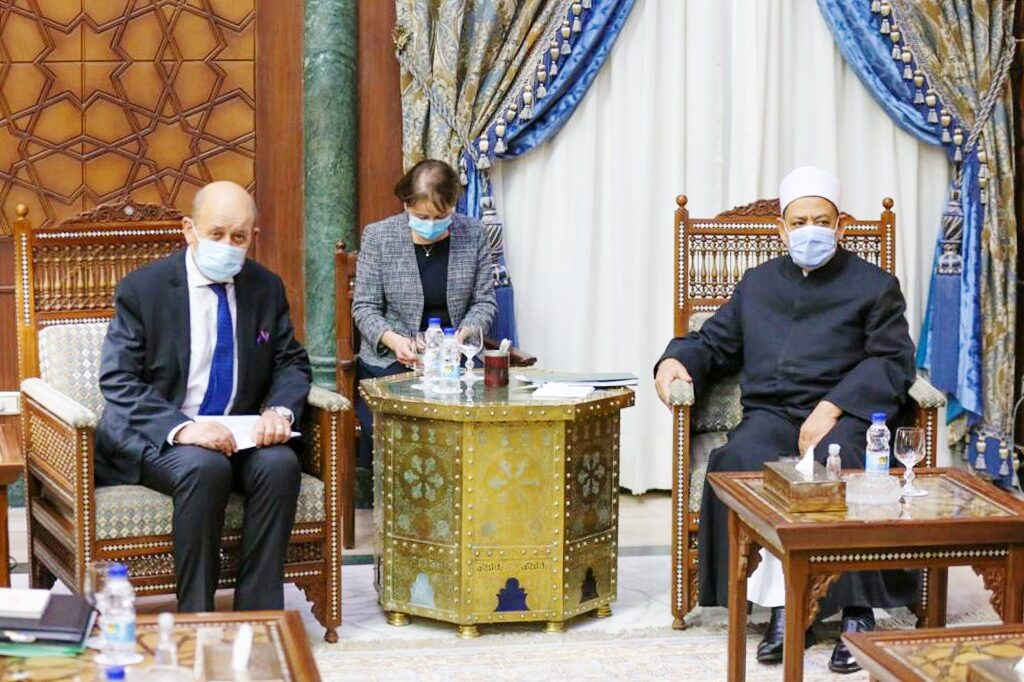 كما قال الطيب : “وددنا أن يكون المسؤولون في أوروبا على وعي بأن ما يحدث لا يمثل الإسلام والمسلمين، خاصة أن من يدفع ثمن هذا الإرهاب هم المسلمون أكثر من غيرهم”. وقالت وزارة الخارجية الفرنسية في بيان قبل وصول لودريان إن وزير الخارجية “سيواصل عملية الشرح والتهدئة التي بدأها رئيس الجمهورية”.