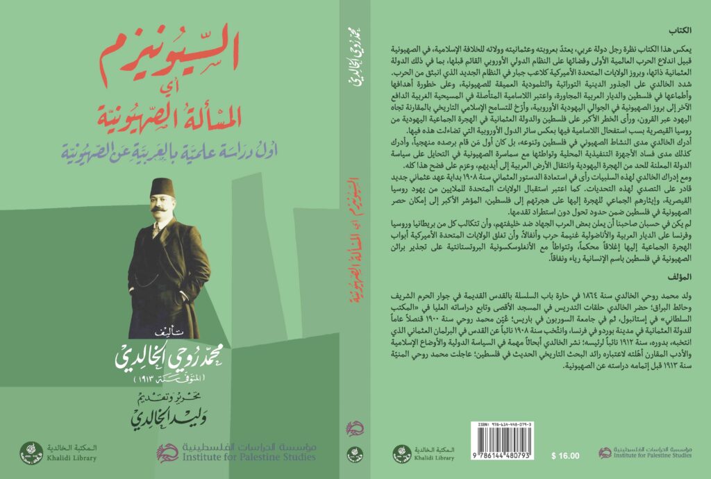 يُنشر حالياً للمرة الأولى منذ تأليفه قبل قرن ، كتاب “السيونيزم أي المسألة الصهيونية أول دراسة علمية تصدر باللغة بالعربية عن الصهيونية،” من تأليف محمد روحي الخالدي، حرره وقدمه المؤرخ الفلسطيني وليد أحمد سامح الخالدي . ليصدر عن مؤسسة الدراسات الفلسطينية ومكتبة الخالدي .