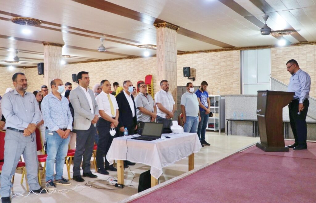 بداية وقف الحضور دقيقة صمت حداداً على أرواح ضحايا انفجار عكار، ثم النشيد الوطني اللبناني ، وأعقبه ترحيب من الناظر العام في ثانوية المنارة رشيد أبو شاهين الذي شرح أهداف اللقاء وأهميته.