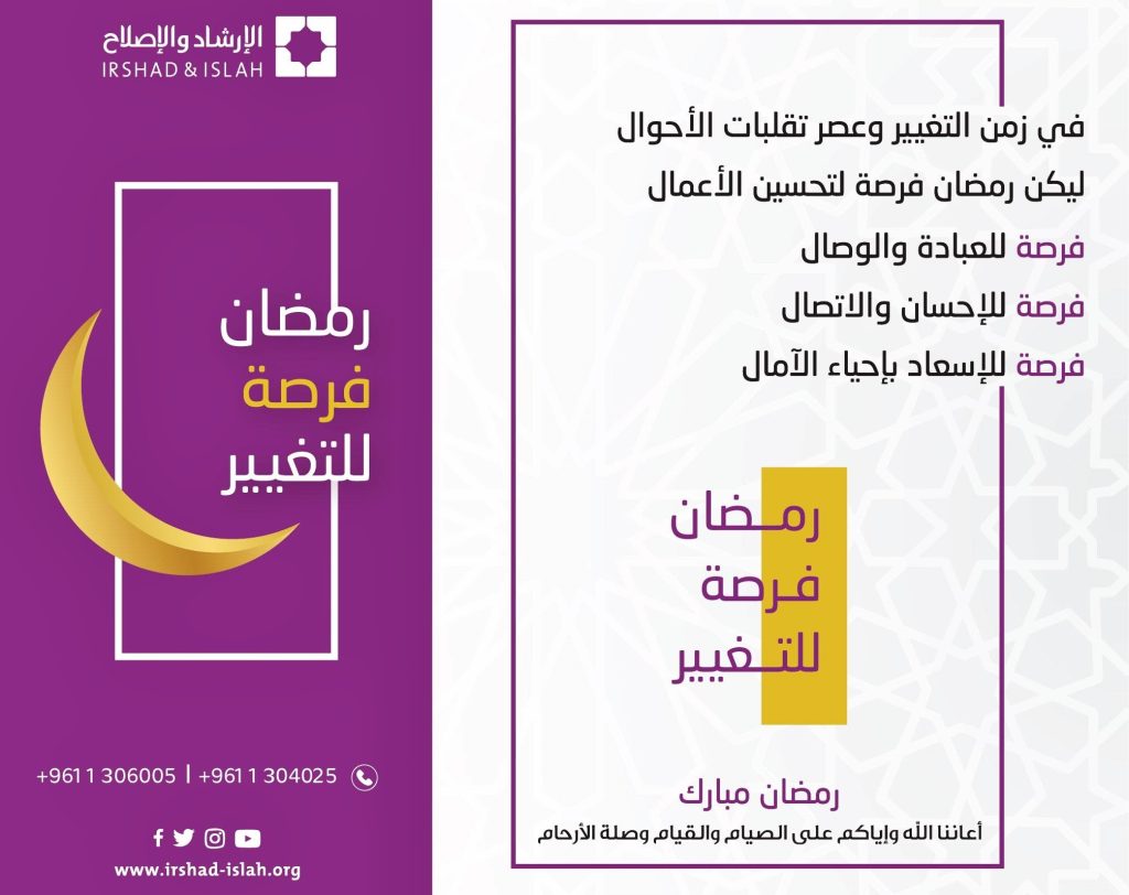 تحت شعار “رمضان فرصة للتغيير” أطلقت جمعية الإرشاد والإصلاح أعمالها الرمضانية لعام 2022م – 1443هـجرية .