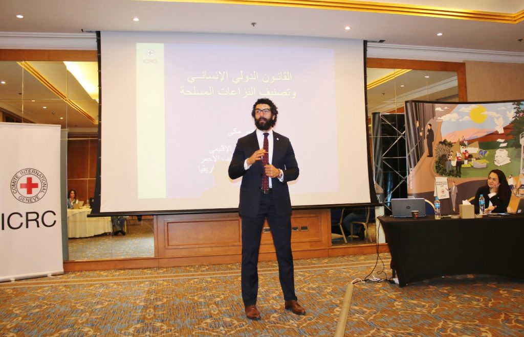 كما حاضر المنسق القانوني الإقليمي في اللجنة الدولية للصليب الأحمر في الشرق الأوسط وشمال افريقيا القاضي عمر مكي المقيم في دولة الكويت .
