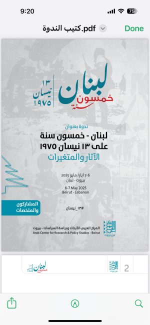 «لبنان ـ خمسون سنة على 13 نيسان 1975: الآثار والمتغيّرات»: غداً وبعده على منصّات التواصل الاجتماعي التابعة لـ «المركز العربي للأبحاث ودراسة السياسات» (بيروت)