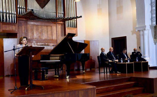 افتتحت الأمسية رئيسة النادي الثقافي العربي سلوى السنيورة بعاصيري بكلمة مؤثرة استحضرت فيها الإرث الثقافي والفني للبنان وللمحتفى به، وقالت:”في حرم هذه الجامعة العريقة، نظم النادي الثقافي العربي أول معرض كتاب في لبنان والعالم العربي عام 1956، واحتضنه حتى العام 1966. واليوم، نحلّ ضيوفًا عليها لنوجّه معًا تحية تقدير ووفاء للموسيقار توفيق الباشا، بالكلمة واللحن، في ذكرى مئويته، تحيةً لقدَرٍ جمع بين العبقرية والانتماء، وبين الإبداع والحنين”.