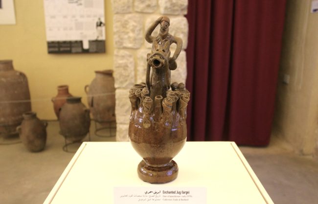 ويتابع ناصر ” تمكنا من جمع مجموعة من الأواني الفخارية المصنوعة بأيدي مهنيين من البلدة كانت محفوظة في بيوت كبار أهلها ، وقمنا بعرضها في المركز وبلغت حوالي 150 قطعة ، وقد حصلنا على بعضها على سبيل الإعارة ، ويتراوح عمر هذه القطع ما بين 75 و150 سنة ، وكانت تلبي احتياجات أهل البلدة في حياتهم اليومية من خوابي المؤونة والمعاجن وحتى الصحون والأباريق “.