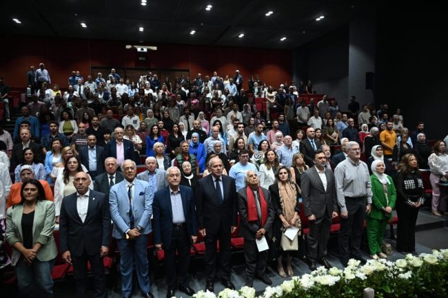 بداية مع كلمة مديرة العلاقات العامة والتواصل في الجامعة السيدة زينة العريس جاء فيها :” خسر لبنان والوطن العربي فناناً شامخاً ،صوتاً لم يعرف المساومة، فكراً منحازاً للإنسان والعدالة، موسيقاه اثمرت في قلوبنا ابداعا، واغنت عقولنا ثقافة، مسرحياته اضحكتنا حتى الإحساس بالوجع.