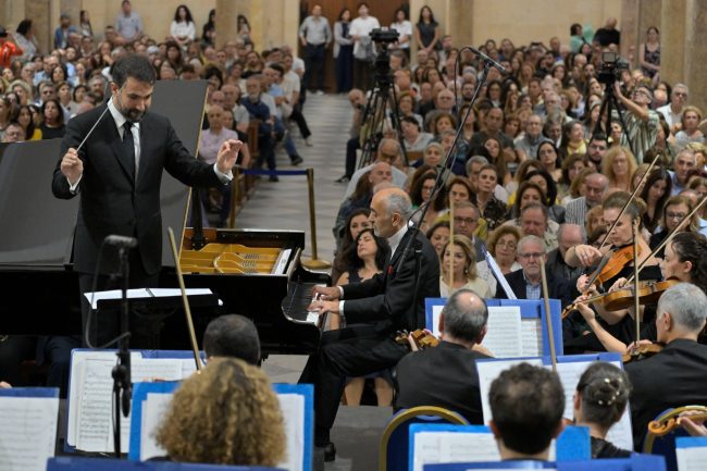 افتتحت الأمسية المبهرة رئيسة الكونسرفتوار هبة القواس بكلمة لامست العمق الوجداني للحفل، وقالت: ” في كلِّ أمسيةٍ كهذه، تولدُ الموسيقى من صمتنا المشترك، لتعيدَ إلينا معنى الوجود .هي ليست نغمًا فحسب، بل فكرٌ حيّ وحالةُ وعيٍ تعيد ترتيبَ العالم على مقياسِ الجمال. الليلة، نحنُ في حضرةِ موسيقي كبير حملَ اسمَ لبنان إلى المسارح الكبرى، وجعل من العزفِ صلاةً تُقال بين الأصابع. إنه عبد الرحمن الباشا. رمزُ العبقرية اللبنانية التي تمزجُ بين الأصالةِ والكونيّة، بين حسِّ الأرض ونَفَسِ الروح، بين التقنية والرؤيا. وحين تمتدُّ أنامله فوق مفاتيحِ البيانو، تُصبحُ الجملة الموسيقية اعترافًا إنسانيًّا، وتشهد النغمات على حوارٍ بين الإنسان والمطلق، بين لحظةٍ زائلةٍ وأبدٍ لا ينتهي. وتحت قبب كنيسة القديس يوسف، التي شكّلت عبر السنين بيتًا روحيًّا دافئًا، ظلّ لسنواتٍ يحتضنُ الفلهارمونية اللبنانية، في لقاءٍ صادقٍ مع جمهورها الوفيّ، تحت أقواسِها الدافئة ومناخهِا المنزليّ المفعم بالسكينة. يعود هذا اللقاء اليوم ليؤكّد أنّ الموسيقى قادرة على أن تُعيد إلينا معنى الانتماء والسكينة. كلّ شكرٍ وتقديرٍ للأب دوني على تعاونه الدائم واحتضانه الكريم لهذا اللقاء الفنيّ الذي يجمعنا الليلة”. وختمت: “وتشرقُ من جديد الأوركسترا الفلهارمونية اللبنانية الوطنية، برؤيةٍ متماسكةٍ، وبنبضٍ يعيدُ تعريفَ العزف الجماعيّ كحوارٍ بين الأرواح بقيادة المايسترو المتميّز لبنان بعلبكي، الذي يقودها بعقلٍ موسيقيٍّ ناضج، وروحٍ تنبضُ بالشغف والانضباط، يقود العازفين برهافة الفكر ودقّة الحسّ، فيتّحد الجميع في لغةٍ واحدةٍ تتجاوز الكلمات. هذه الأمسية ليست حفلًا فحسب، بل فعل إيمانٍ بالموسيقى كقوّة خلقٍوبلبنان كرسالة حضارةٍ وضياء”.
