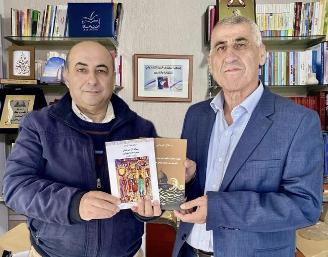 وختم “اشكر الفنان دلال على لمسته الجمالية من خلال تزيين غلاف الكتاب بلوحة قيّمة من ريشته الفنية.