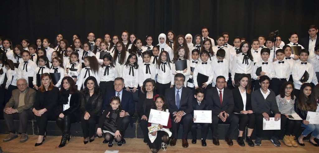 واختتم الاحتفال بأغنية «سلام حرية» قدمها كورال مدارس المؤسسة بقيادة تاتيانا اندريا واشراف المؤلفة قواس وبالتقاط صور تذكارية على خشبة المسرح للمناسبة .