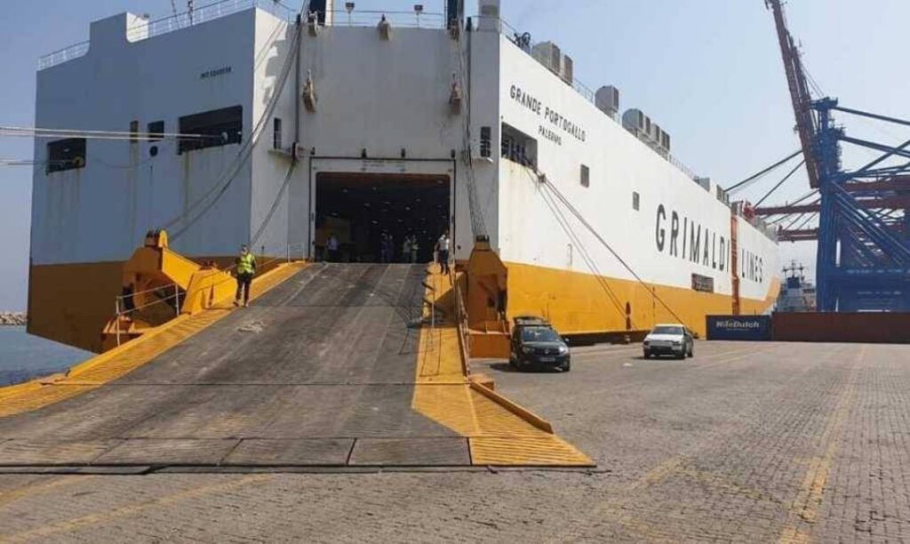 رست صباح اليوم باخرة “Grande Portogallo” للسيارات التابعة لخطوط الملاحة الإيطالية Grimaldi على الرصيف رقم 16 في محطة الحاويات في مرفأ بيروت لتفريغ وشحن عدد من السيارات الجديدة والمستعملة، إضافة إلى المعدات الثقيلة.