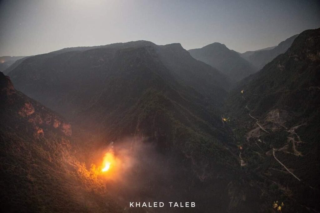 صورة مُباشرةتُظهر شمال وادي جهنّم الذي يقع في منطقة مشمش – عكّار يحترق.