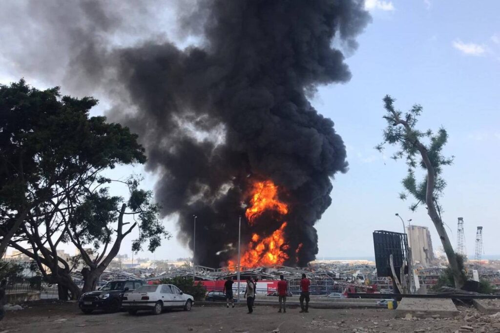 تقوم طوافات الجيش اللبناني بمحاولات متكررة لإطفاء الحريق الذي شب فجأة في المنطقة الحرة بمرفأ بيروت، وعلم أن النار شبت في مستودع للزيوت لشركة خاصة وبالقرب منه كمية كبيرة من إطارات السيارات ، وقامت القوى الأمنية بتحويل السير من أوتوستراد المرفأ لتسهيل وصول سيارات الإطفاء .