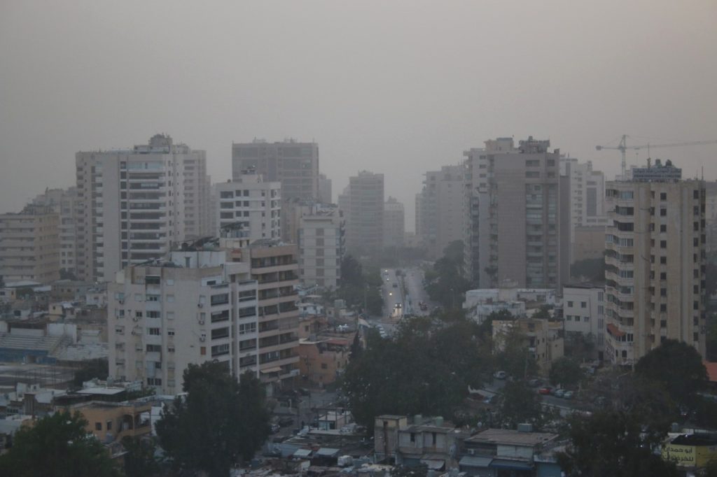 عادت موجة الضباب لتغطي سماء العاصمة بيروت والمناطق المجاورة مثيرة الغبار ، وتزامنت هذه الحالة مع رطوبة عالية وفي الداخل هطلت زخات من البرد بحبات كبيرة خاصة على بعض مناطق البقاع الغربي استمرت خلال فترة بعد الظهر وكذلك في البقاع الشمالي .