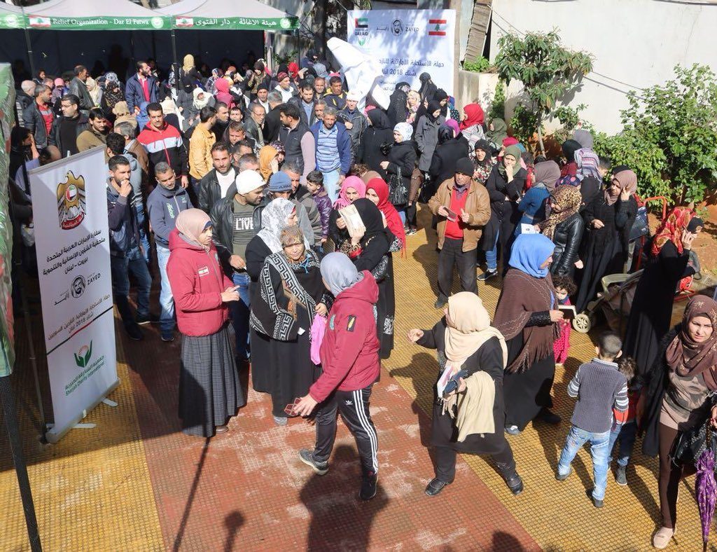 باشرت “ملحقية الشؤون الانسانية والتنموية” لدى سفارة دولة الامارات العربية المتحدة في لبنان “حملة الاستحابة الاماراتية للنازحين السوريين شتاء 2018 – لبنان” فوزعت على مدار اليومين الماضيين ألف حصة غذائية في منطقة قصقص – بيروت ب وذلك الشراكة مع “هيئة الاغاثة والمساعدات الانسانية” التابعة لدار الفتوى هبة من “جمعية الشارقة الخيرية”.