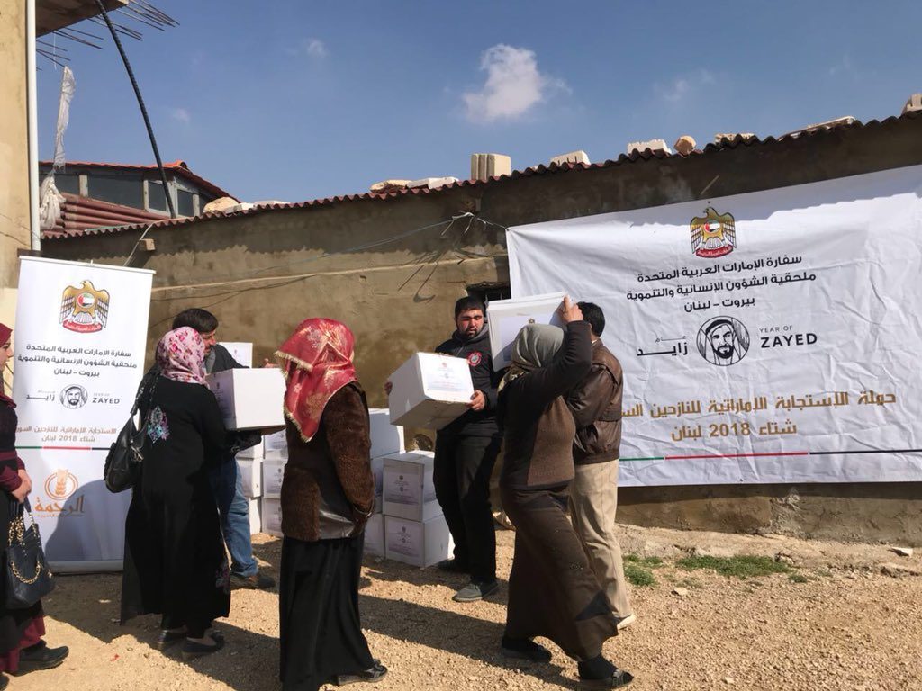 استكملت “ملحقية الشؤون الانسانية والتنموية” لدى سفارة دولة الامارات العربية المتحدة في لبنان “حملة الاستحابة الاماراتية للنازحين السوريين شتاء 2018 – لبنان” حيث وزعت أكثر من 1293 حصة غذائية في بلدة عرسال الحدودية التي تتحمل العدد الأكبر من النازحين السوريين وتم ذلك بالشراكة مع “هيئة الاغاثة والمساعدات الانسانية” التابعة لدار الفتوى على مدار 3 أيام بهبة من “جمعية الرحمة للأعمال الخيرية”.