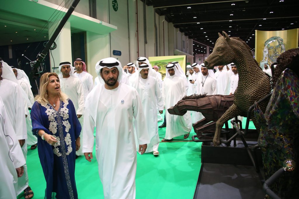 وقالت صوايا أن أبرز مفاجآت جناح المهرجان هذا العام تصدر واجهته تصميم مميز لصورة للمغفور له بإذن الله الشيخ زايد بن سلطان آل نهيان مصنوع من مواد فريدة من نوعها ، كما يتصدره مجسم ل 10 خيول مصنعة من مواد من بعض الدول التي أقيمت فيها نشاطات المهرجان ، ويعلو الخيول مجسم لجواد ” روبوت “يمثل رؤية الإمارات في الصعود الى الفضاء ، خاصة بعد توقيع دولة الإمارات ، مُمثّلة بمركز محمد بن راشد للفضاء ، ودولة روسيا الإتحادية ، مُمثّلة بوكالة الفضاء الروسية (روسكوسموس)، إتفاقية تعاون لإرسال أول رائد فضاء إماراتي للمشاركة في الأبحاث العلمية، ضمن بعثة فضاء روسية إلى محطة الفضاء الدولية، على متن المركبة الروسية سويوز إم إس الفضائية خلال الأشهر المقبلة.