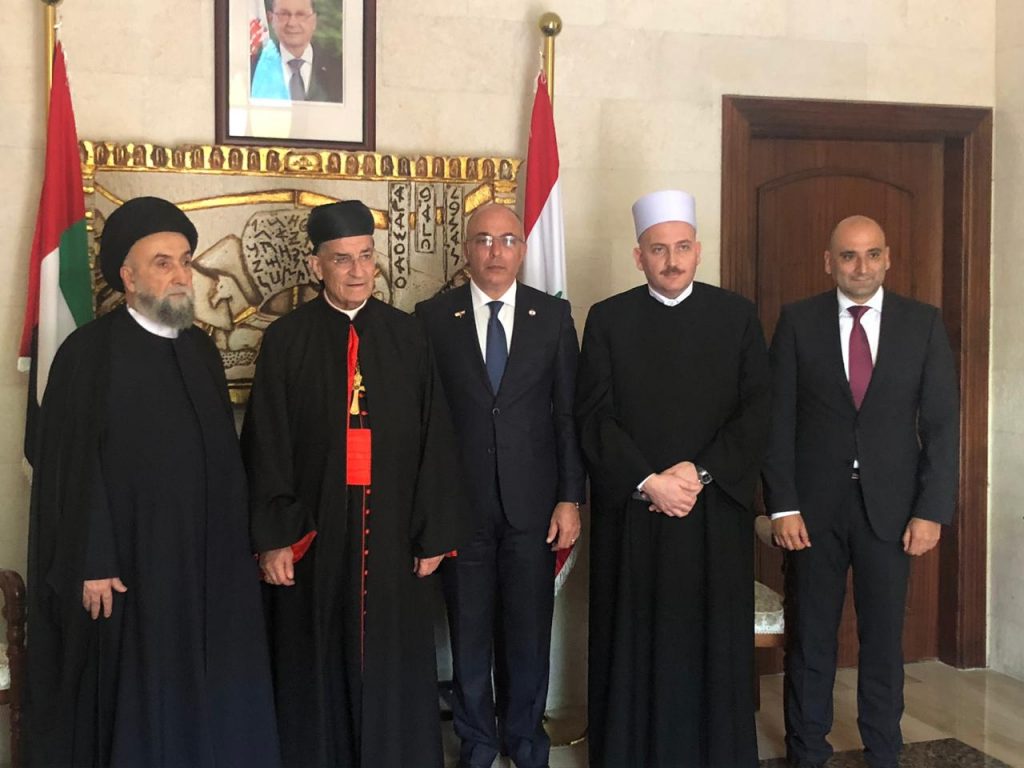نظمت السفارة اللبنانية في أبو ظبي حفل استقبال على شرف البطريرك الماروني الكاردينال مار بشارة بطرس الراعي ومفتي الجمهورية اللبنانية الشيخ عبد اللطيف دريان، بحضور سفير الإمارات العربية المتحدة حمد سعيد الشامسي.