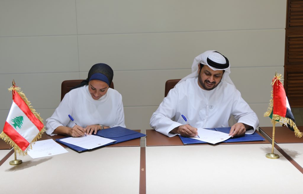 وقع سفير دولة الإمارات العربية المتحدة د. حمد سعيد الشامسي إتفاقية تعاون مع رئيسة جمعية “عكارنا” عزة عدرة بشأن تنفيذ دورة بعنوان “بالتسامح نواجه التطرف والإرهاب” بهبة كريمة من مؤسسة “خليفة بن زايد آل نهيان للأعمال الإنسانية”.