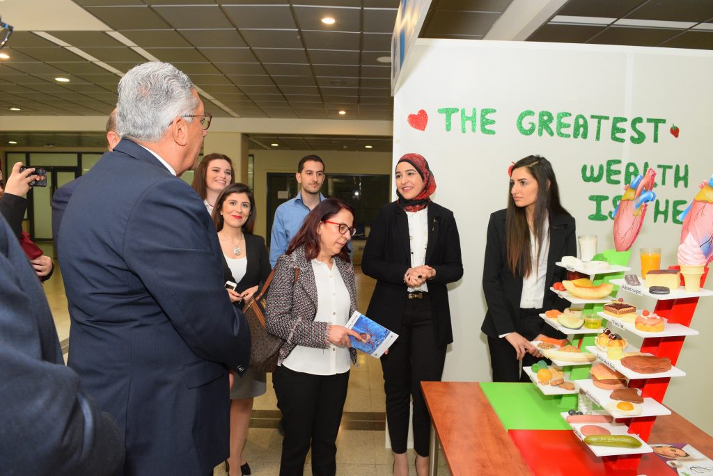 بداية مع النشيد الوطني اللبناني ونشيد الجامعة، ثم تحدثت مديرة كلية العلوم الصحية الدكتورة نسرين تدمري ان هذا الاحتفال يقام بمناسبة يوم الصحة العالمي مع الذكرى السبعين للاجتماع العالمي الأول لمنظمة الصحة العالمية في 7 نيسان عام 1948 بهدف التوعية للمشاكل الصحية المنتشرة في مختلف المجتمعات لذا كان عنوان هذا العام ” أمراض القلب والشرايين: نمط حياة أم وراثة” لإلقاء الضوء على عوامل الخطر من خلال محاضرات متخصصة ومشاريع أعدها طلاب كلية العلوم الصحية “.