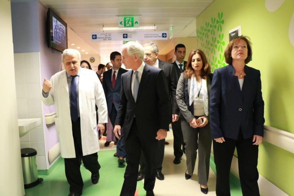 كذلك زار الوفد المرضى المقيمين في المركز، وتفقد الأطفال وهم يلعبون في قاعة الألعاب. وفي ختام الزيارة، دون كل من السيناتور كوركر والسفيرة ريتشارد رسالة عبارات تذكارية في الكتاب الذهبي للمركز، عبرا فيها عن إعجابهما بجميع العاملين والمسؤولين فيه لجهودهم في إنقاذ حياة الأطفال واحياء الأمل لديهم.