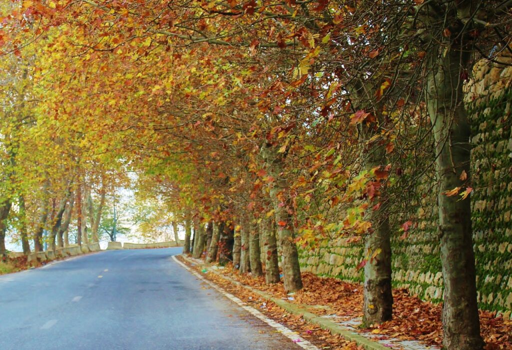 تتوالى الفصول عاماً بعد عام ويبقى الهدوء والجمال هنا في كل الأوقات … عين صوفر بإتجاه المديرج بوابة البقاع عبر ضهر البيدر ، تعقد قوس النصر لزواره … تزينه بالذهب الأصفر إيذاناً بقرب فصل الشتاء يكللها بالأبيض النقي … هي حلوة في كل الفصول ، والخريف يكمل دورة الحياة إيذاناً بروح متجددة يزينها الأخضر عند قدوم فصل الربيع … للخريف رونقه أيضاً …!