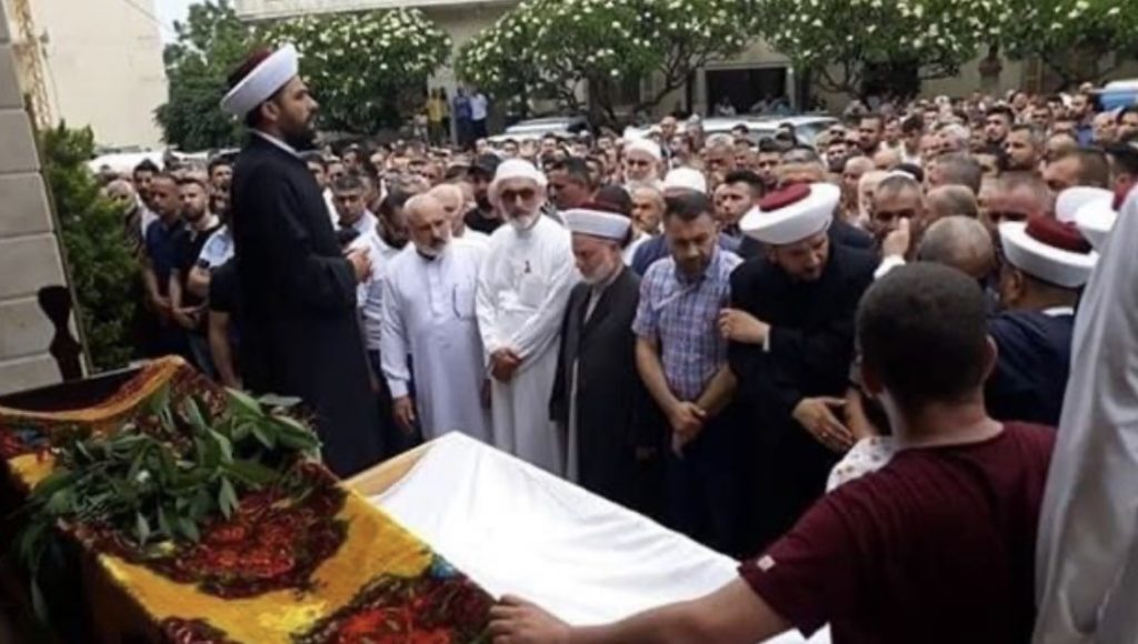 وصلّى على جثماني الضحيتين في مسجد المنية الكبير، حيث أمّ المصلين الشيخ يوسف جاج وطالب بالقبض على المجرمين وإنزال أشدّ العقوبات بحقهم.