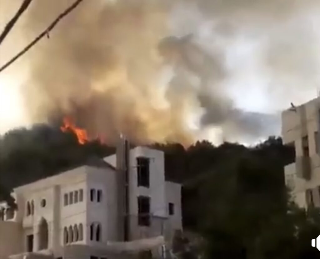 حريق في العبادية والنار تقترب من المنازل واهالي المنطقة يناشدون الجهات المعنية المساعدة