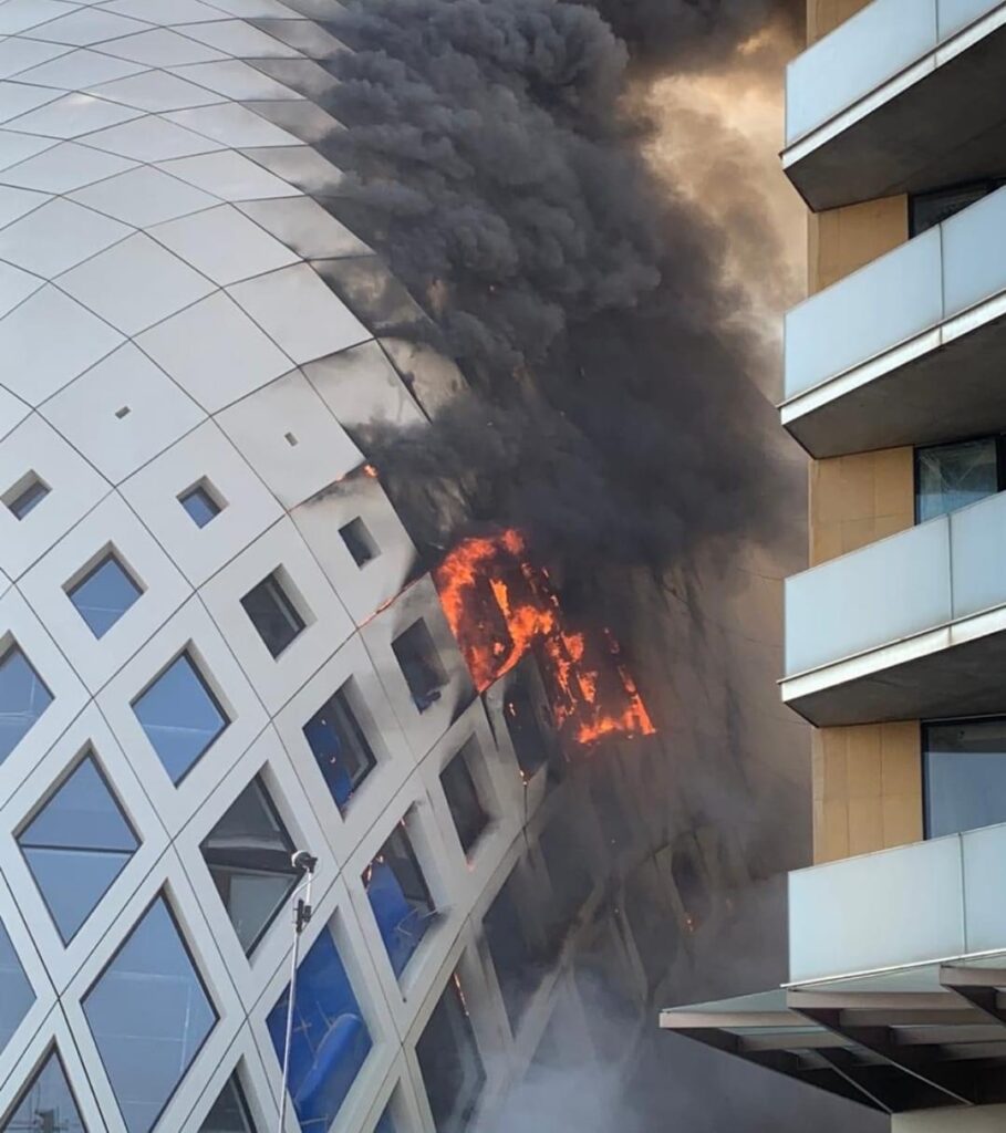 اندلع صباح اليوم حريق كبير في أحد المجمعات التجارية قيد الانشاء في وسط بيروت(مبنى زها حديد)