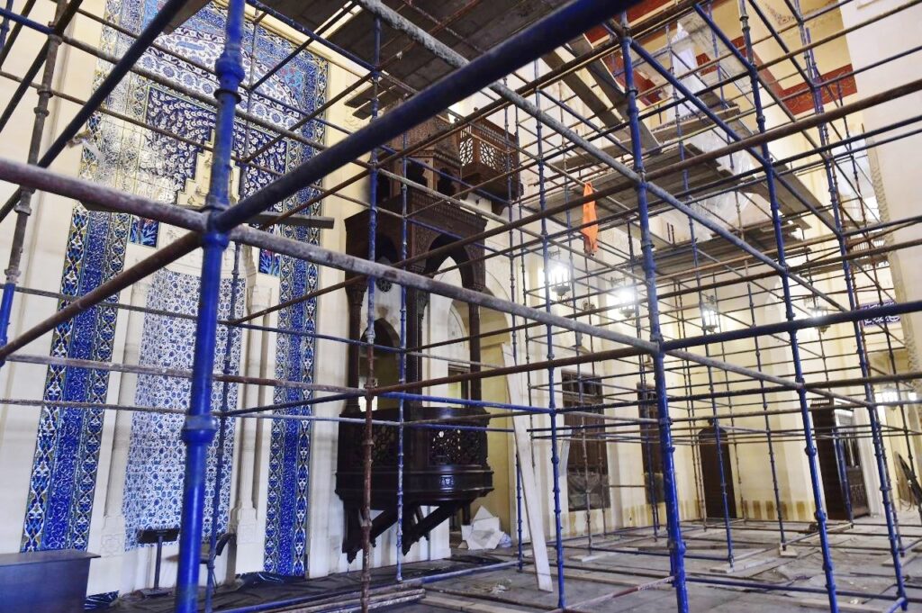 وتشمل الأعمال بحسب جردلي ترميم الأسقف المستعارة في قاعات الصلاة ‏المخصصة للرجال والنساء، وكذلك الأبواب والواجهات والنوافذ والقبب وزخارفها، ‏بالإضافة إلى الواجهات الزجاجية والخشبية.‏