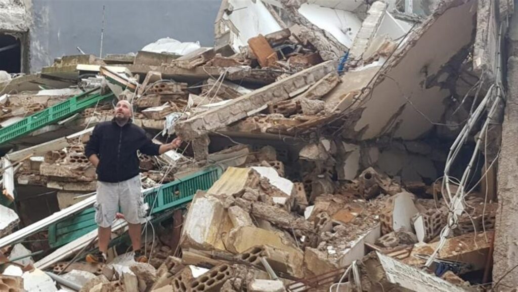 انهار مبنى غير مأهول متضرر من انفجار مرفأ بيروت في منطقة المدور نتيجة تساقط الأمطار الغزيرة.
