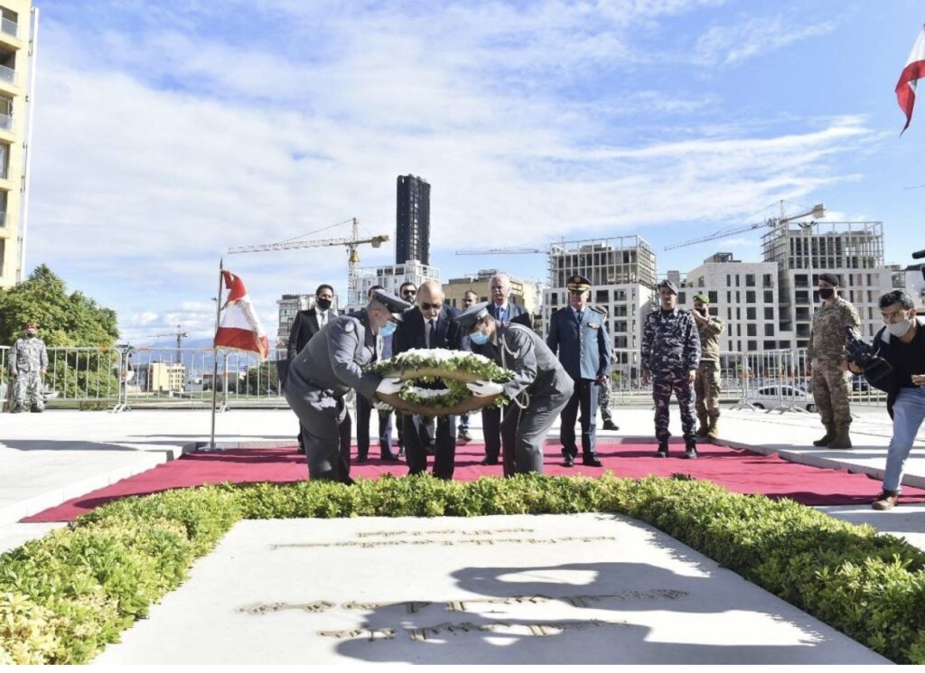 وضع عضو كتلة “المستقبل النيابية” النائب نزيه نجم إكليلا من الزهر باسم الرؤساء الثلاثة على ضريح الرئيس الشهيد رفيق الحريري في ساحة الشهداء، في حضور ممثل قائد الجيش العميد الركن خليل الخليل، المنسق العام لبيروت في “تيار المستقبل” سامر سوبرة واعضاء مكتب بيروت ومدير مكتب الرئيس الشهيد رفيق الحريري عدنان فاكهاني، فيما عزفت موسيقى قوى الامن الداخلي لحن الموتى والنشيد الوطني.