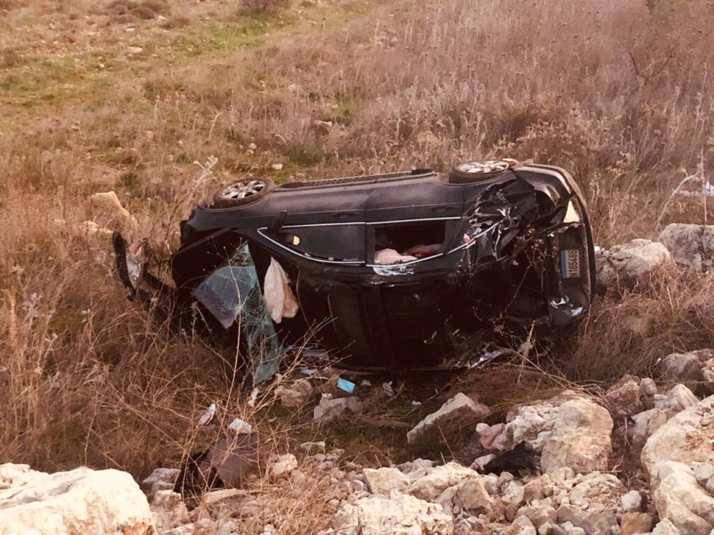 أفادت “الوكالة الوطنية للاعلام” أن سيارة رباعية الدفع من نوع هوندا crv انقلبت على طريق تل النحاس – الخردلي، مما أدى الى إصابة جميع ركابها برضوض وجروح، وهم عائلة من بلدة كفركلا مؤلفة من أب وأم وولدين، وتم نقلهم الى مستشفى مرجعيون الحكومي للمعالجة.