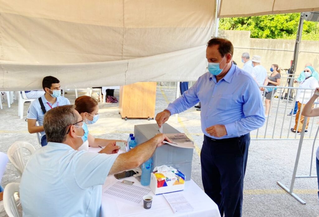 إفتتح نقيب المهندسين في بيروت جاد تابت عملية الإقتراع، يحيط به أمين السر جان بيار جبر وعضو المجلس توفيق سنان، بتلاوة مواد من قانون تنظيم مهنة الهندسة إيذانا ببدء التصويت.