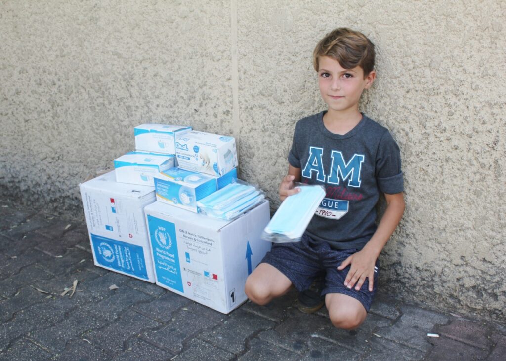 أحمد طفل سوري من محافظة درعا السورية يجلس تحت أشعة الشمس المحرقة عارضاً ما يتيسر له للبيع على الرصيف ، يبيع الكمامات للوقاية من وباء كورونا في أحد شوارع بيروت … يبادرك بالقول : “خذ كمامة يا أستاذ والعلبة ب 20 الف إذا بدك ” .