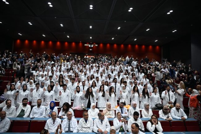 ختاماً، ارتدى الطلاب الرداء الأبيض، معلنين التزامهم خلال سنوات التدريب القادمة بالمرضى ورعايتهم والحفاظ عليهم.