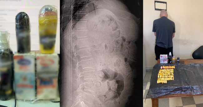 أجريت صورة شعاعية لجسم الوافد، حيث تبين وجود 65 كبسولة، بداخلها مادة الكوكايين، بلغت زنتها 769غ.
